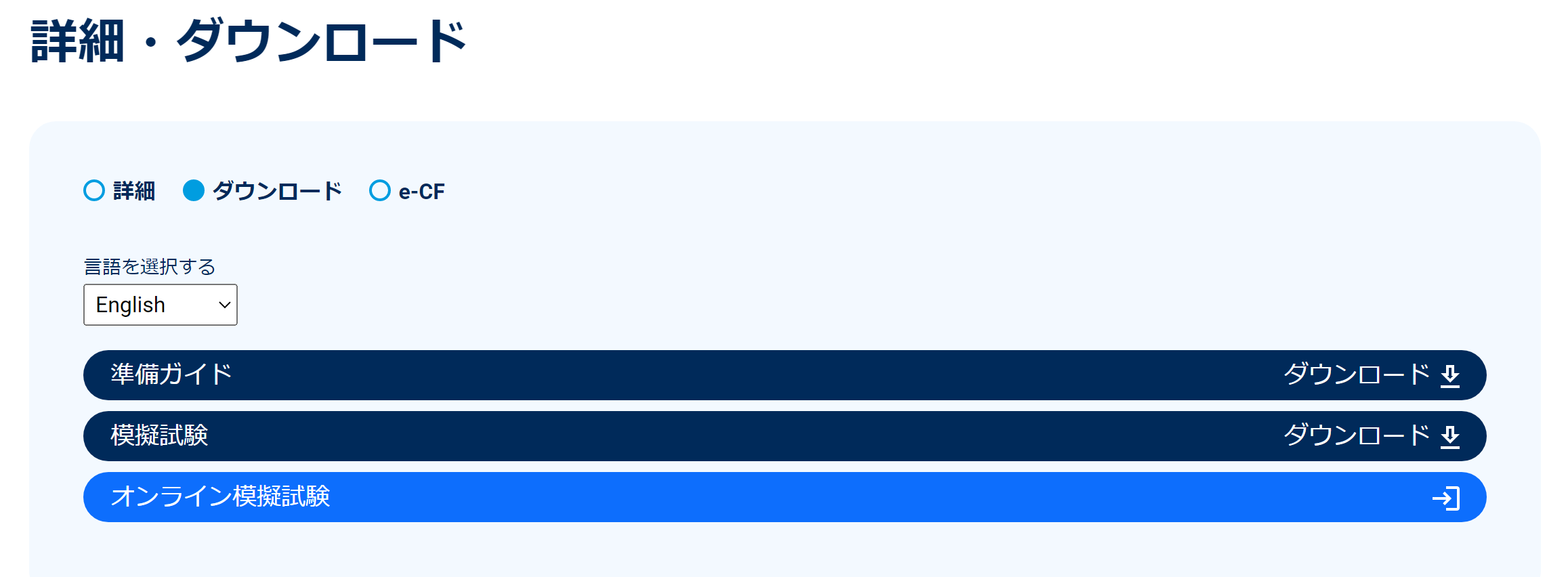 すると、「準備ガイド」や「模擬試験」をダウンロードできるリンクが表示されます。