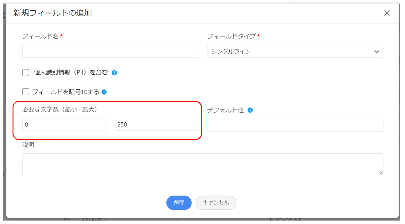 業務要件に応えるため細かな入力チェックをしたい場面は多いのですが、追加フィールドのシングルラインの設定では、最大最小の文字数しか指定できません(図1)。