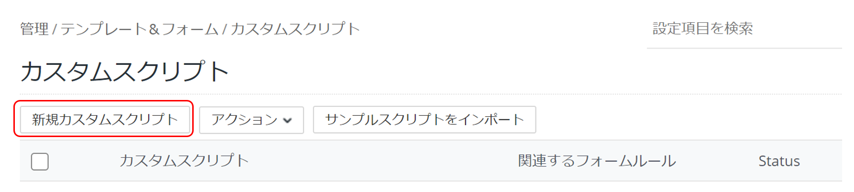 カスタムスクリプトは、管理>テンプレート>カスタムスクリプト、から作成します。