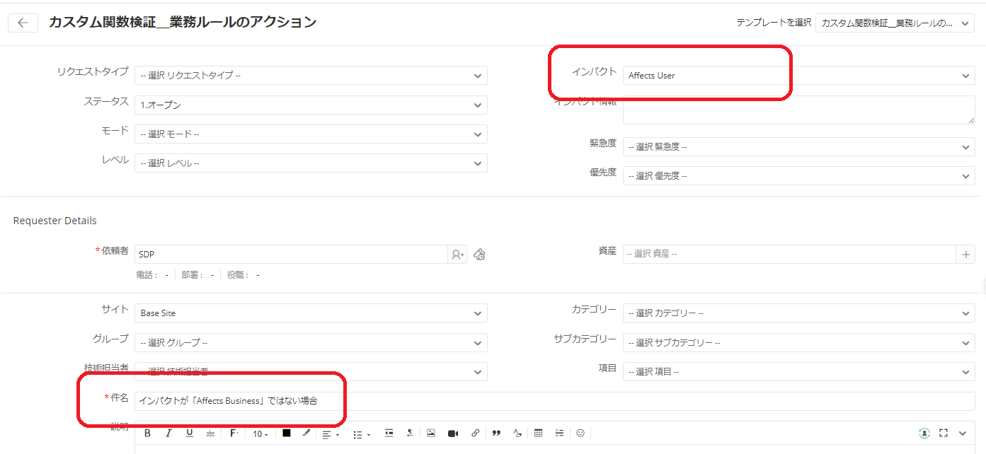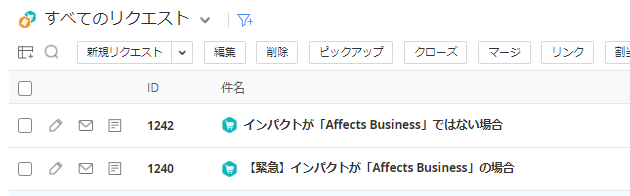 今回のユースケースは、チケットのインパクトが「Affects Business(ビジネスに影響がある)」だった場合、件名に「【緊急】」と自動的につけることで、リクエスト一覧を開いた時の視認性を高めることとします。