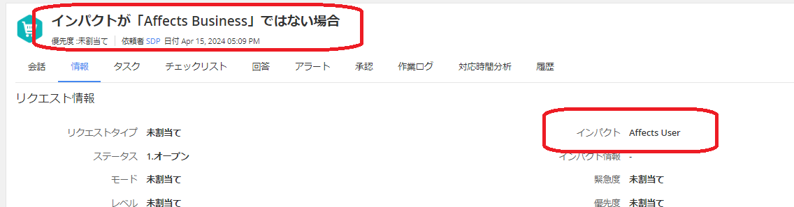 入力画面インパクトが「Affects Business」ではない場合、チケット登録後の件名に変更はありません。