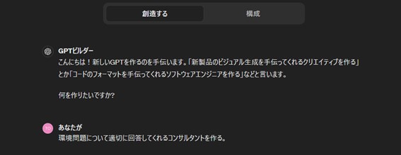 今回は環境問題について適切な回答をしてくれるコンサルタントを作成してみたいと思います。
