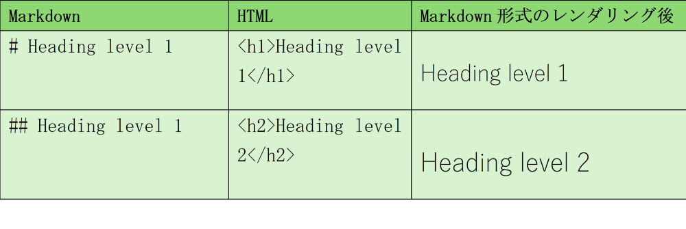 Markdownは、フォーマットされたテキストをプレーンテキスト形式で表現できる非常に便利な形式です。基本的に、レンダリングされていないバージョンにて、「# Heading level 1」を書くことで、それが大きいことを示します。レンダリングすると、これが表示されます。