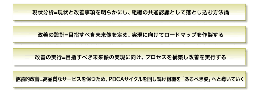 ITSM改善サイクルの全体の活動を見直し、お客様に最適で有効なマネジメントサイクルを構築いたします。