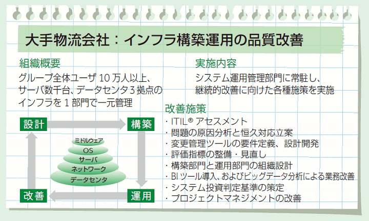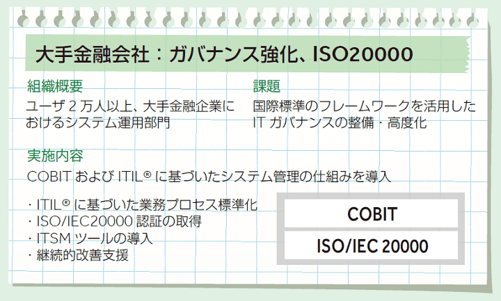 ITSM業務改善(ワークショップ型)では、ITIL®やCOBITなどのフレームワークを活用しながらお客様企業のITサービスを最適化いたします。