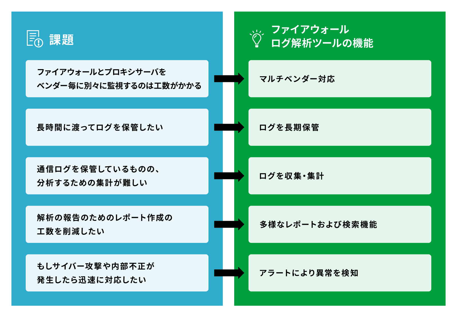 ファイアウォールログ解析ツールにより、前述の課題を解決することが可能です。