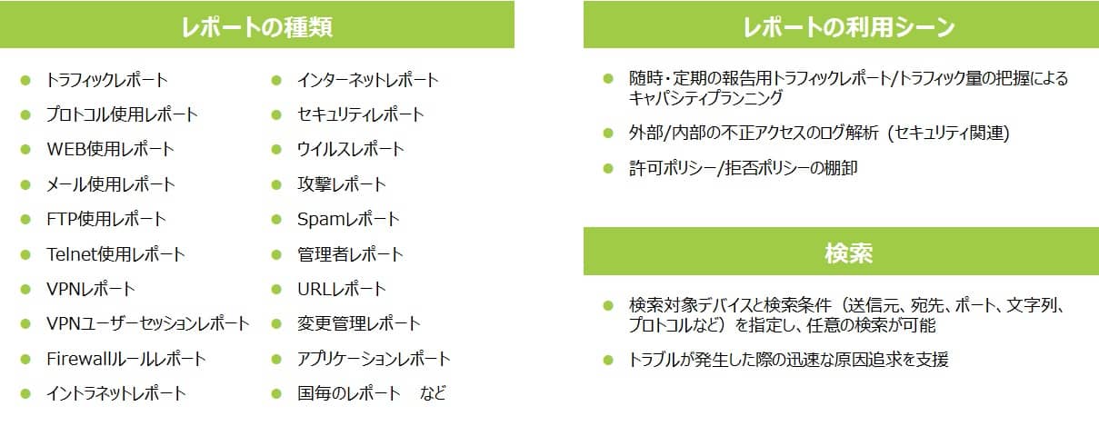 【ログを可視化する多様なレポートおよび検索機能】