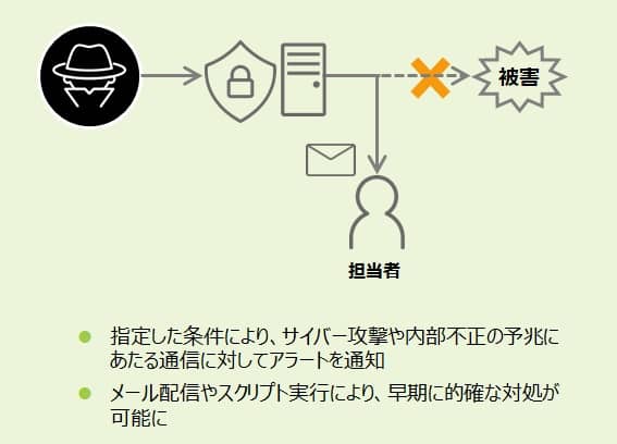 ファイアウォールログ解析とは、外部との接点となるファイアウォールやUTM装置、プロキシサーバのログを解析し、サイバー攻撃や内部不正を検知することをいいます。