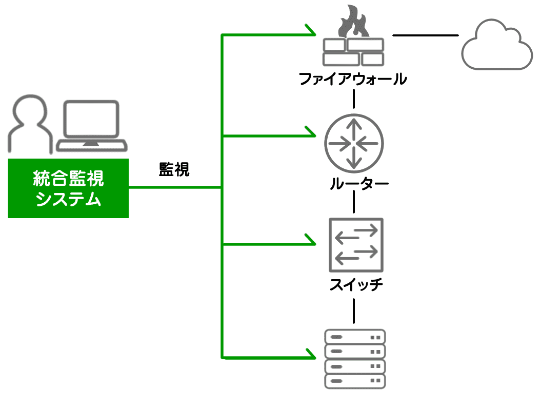 サーバ・ネットワーク統合監視とは、サーバやルーター、スイッチ、ファイアウォールなど、複数種類の機器の状態を一元的に監視する仕組みです。