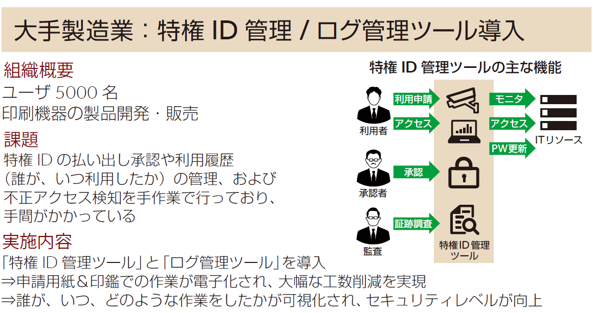 特権ID管理ツール「Password Manager Pro」の製品導入をおこないます。 特権IDの不正利用や情報漏えいのリスクを大幅に低減できます。誰がいつどのIDを使用したかを可視化・記録できるため、内部統制の強化やコンプライアンス対応に有効です。 |